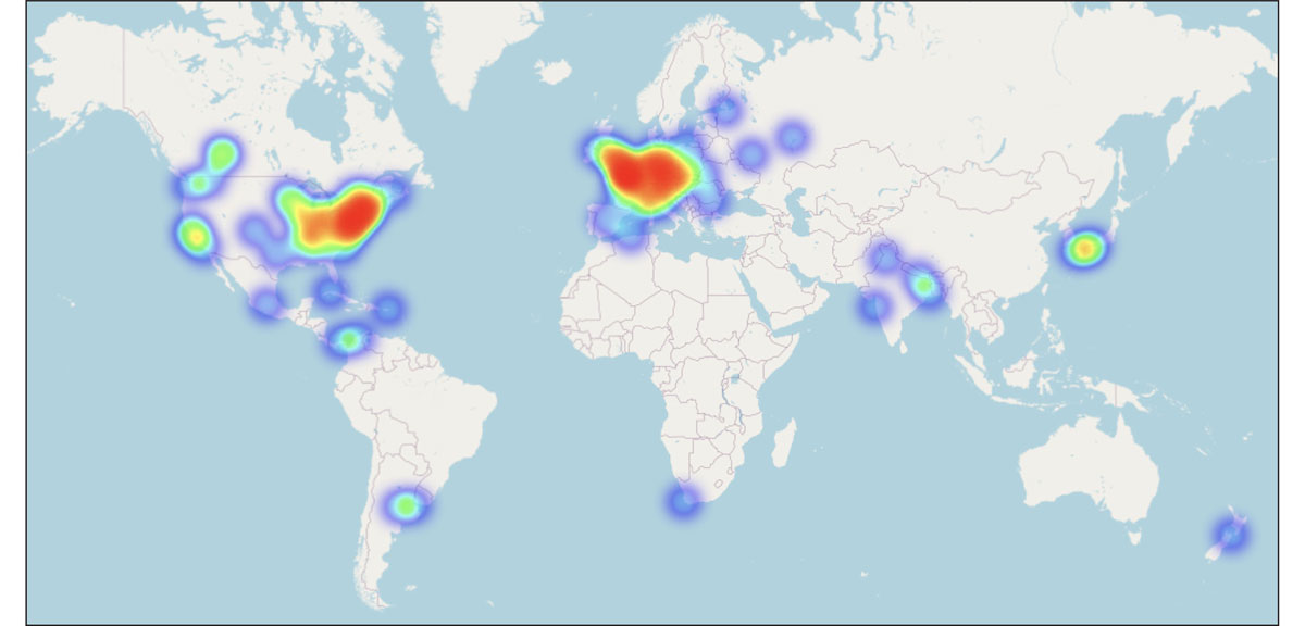 - Longitude and latitude for the birth places were extracted by WikiData using the packages in the footnotes above, then visualized using folium 0.19.4, HeatMap plugin, https://pypi.org/project/folium/. [^]